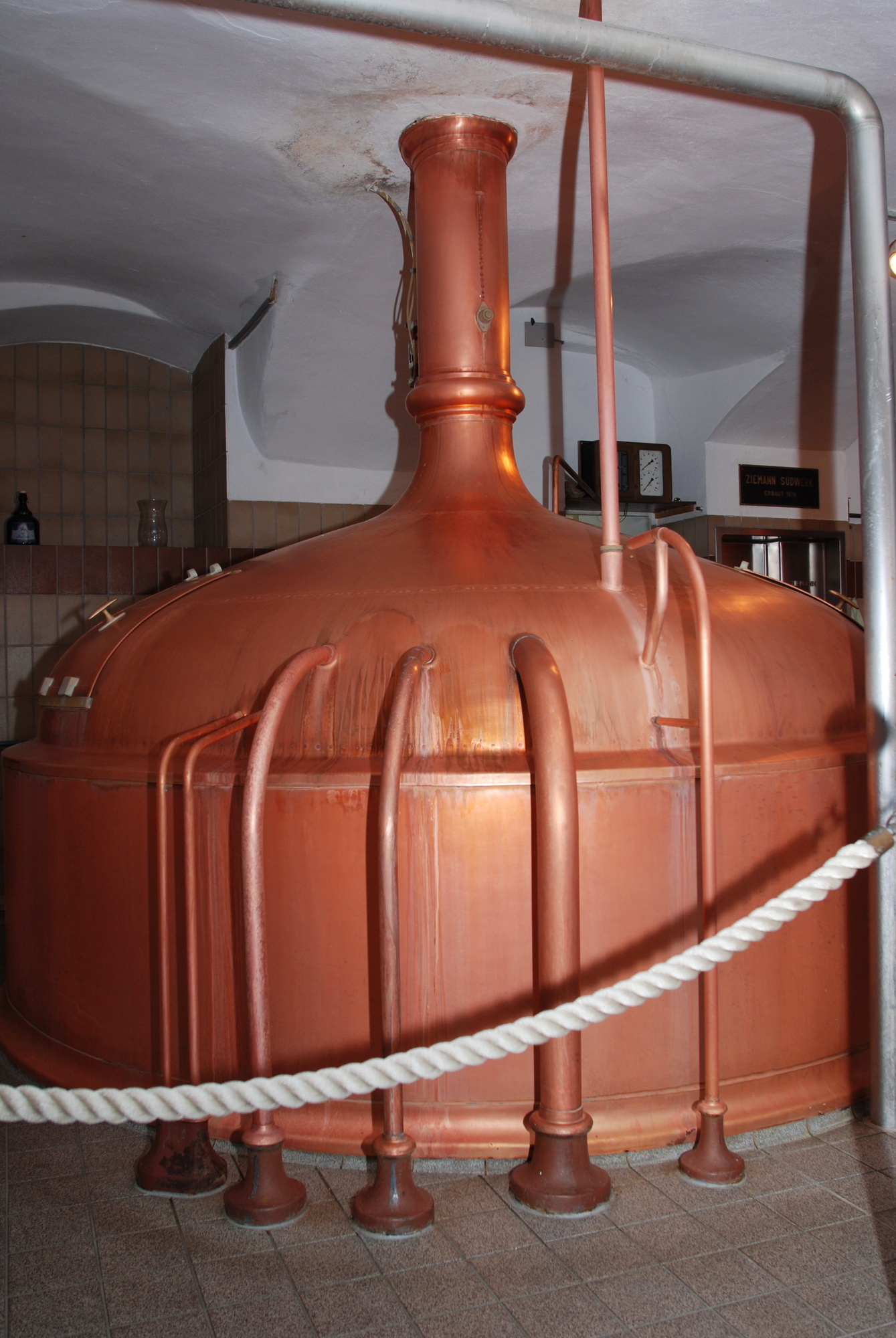 Nach der Stadtführung stand die Besichtigung des Schneider Bräu an. Der Braumeister, Herr Hofstätter, führte durch die ehrwürdige Braustätte. Durch die Enge des Sudhauses bedingt, musste die Gruppe geteilt werden. Pils, Helles, Weizen und Märzen werden hier gebraut. Besonderer Beliebtheit erfreute sich das Märzen. Freunde fand aber auch die Gose, die in einer mit Schneider Bräu verbundenen Kleinbrauerei im Bayerischen Bahnhof in Leipzig gebraut wird.
